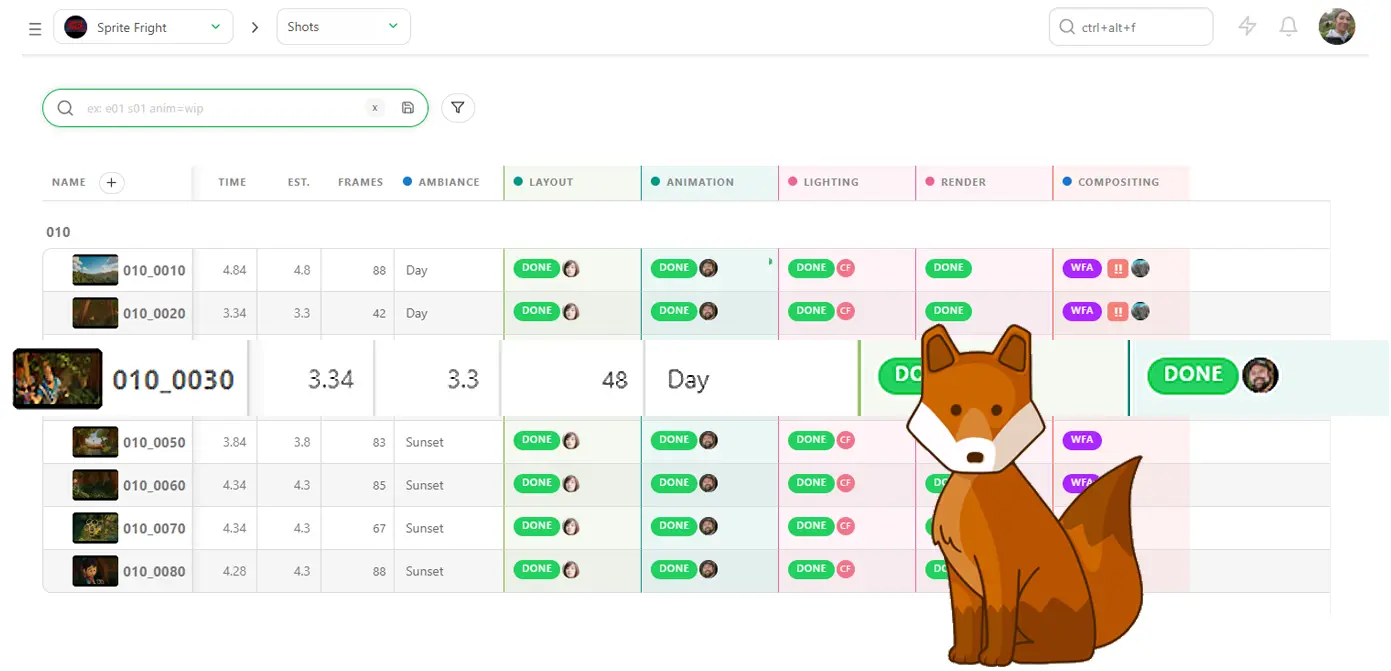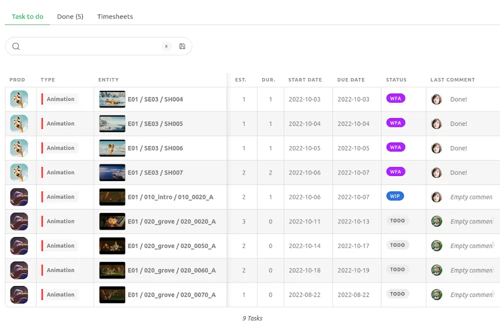 Streamlined and intuitive software is quicker to use and easier to get started with. With Kitsu, you can start your projects without the need for a consultant or intensive training.